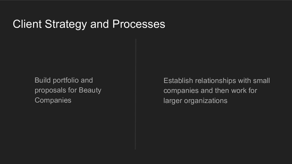 Client Strategy and Processes Build portfolio and proposals for Beauty