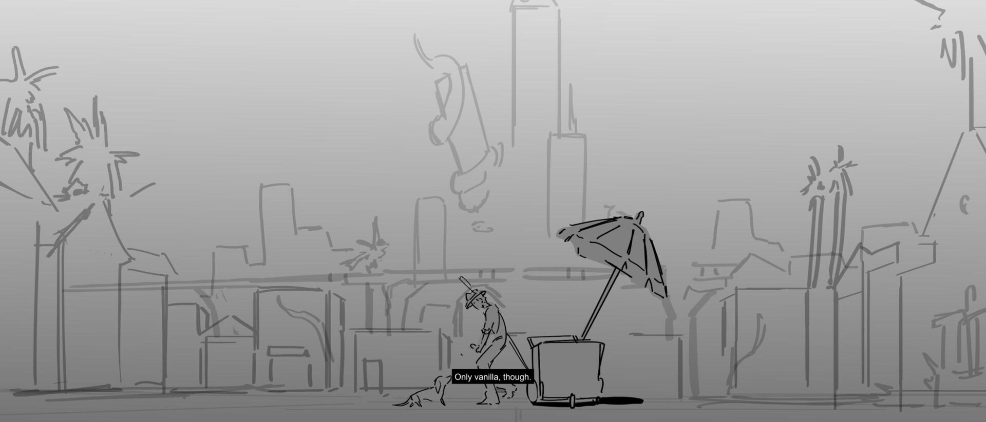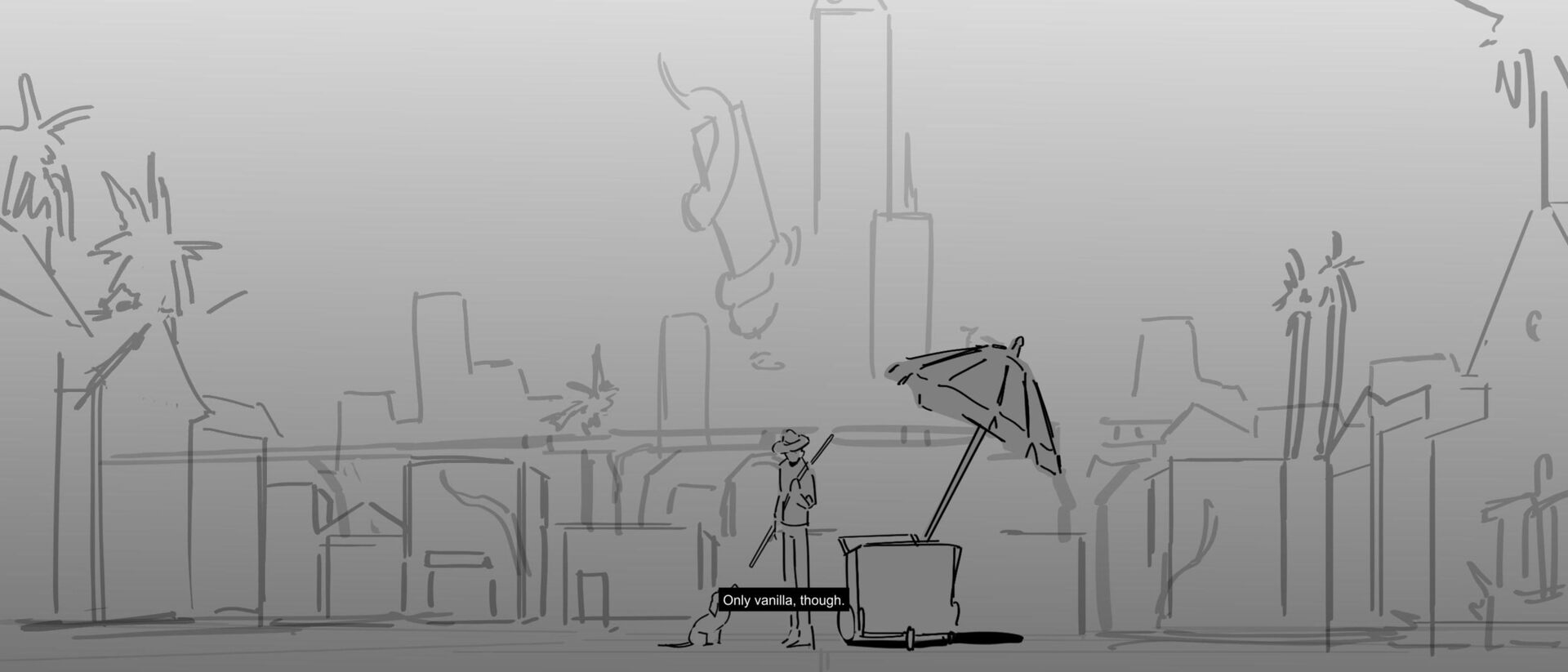 A paletero and his dog, Chancho, navigate a version of Los Angeles now overrun by invasive and dangerous plants. A story inspired by my dog, Pickles, who has a better time befriending oranges than people.