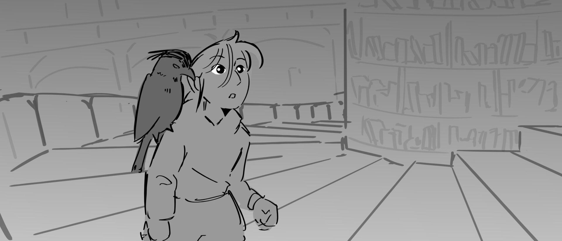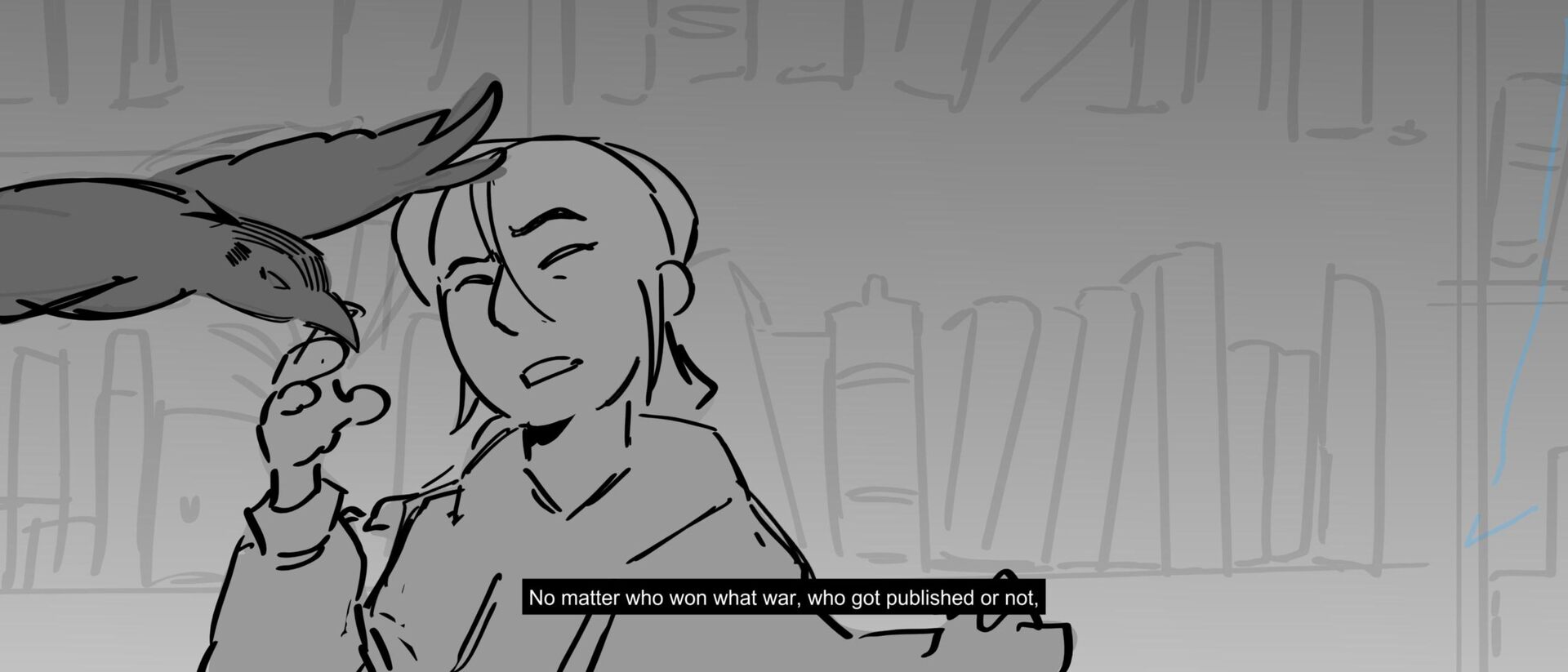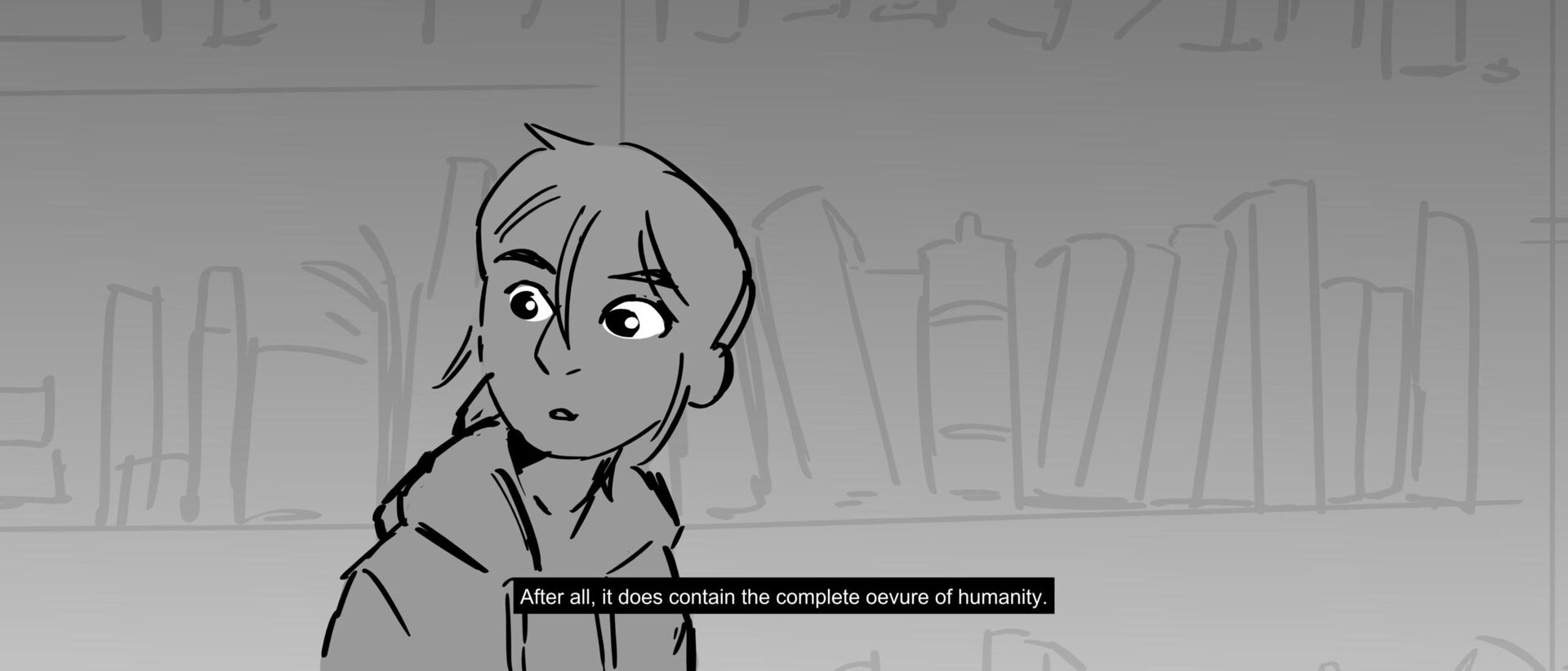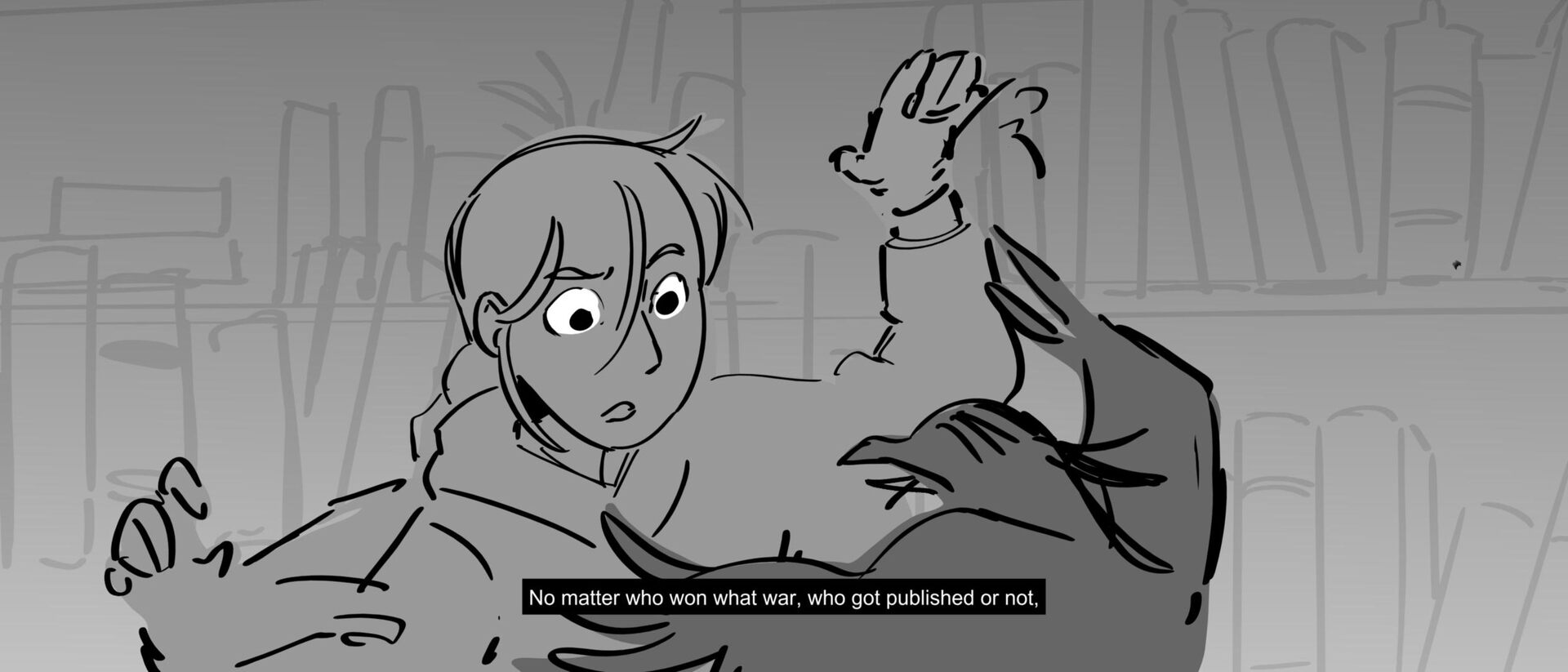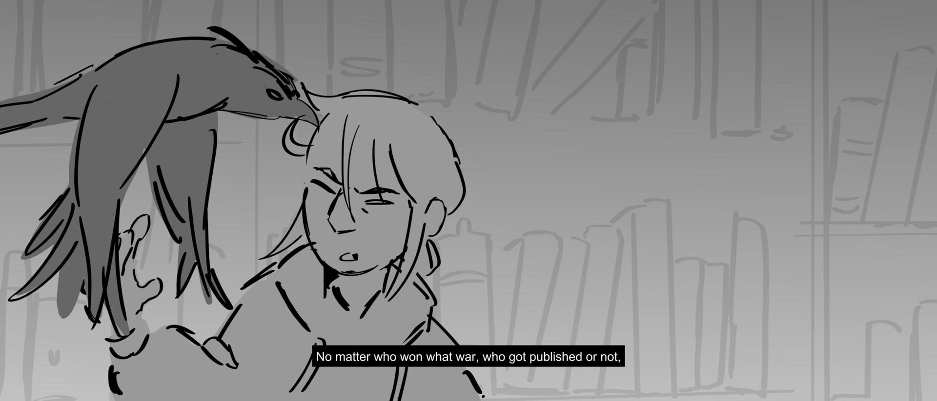 The curious grandson of a famous writer uncovers the massive, unending hallways of a library, guarded by birds of prey and one very kind librarian. Within the halls, however, lies the existence of one unwelcomed intruder that puts the entire knowledge of humanity ever written down at risk of being destroyed.