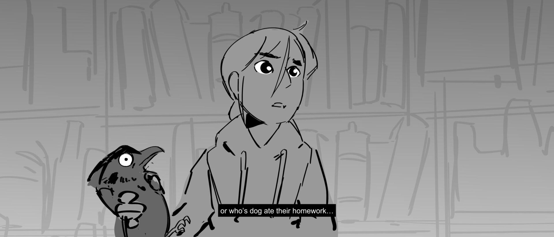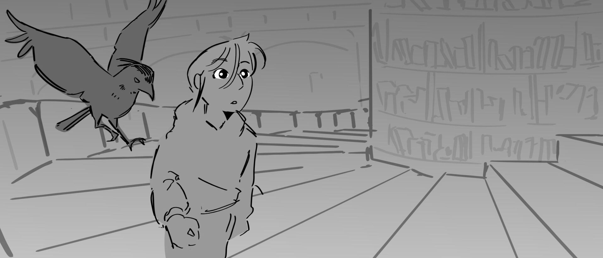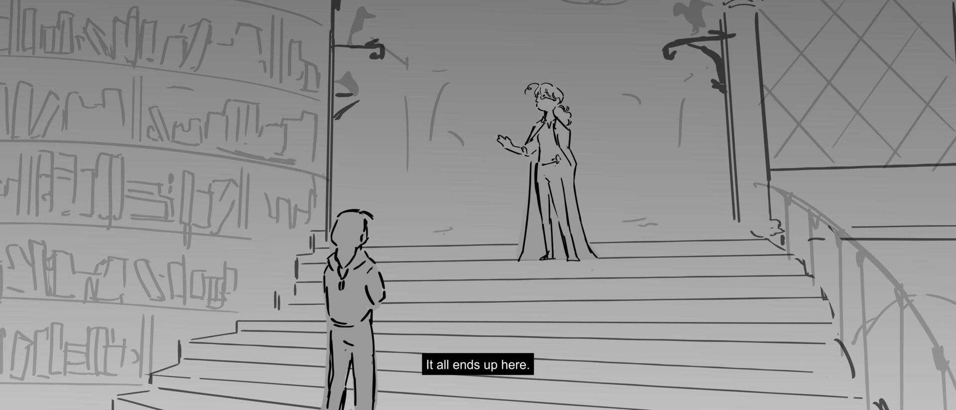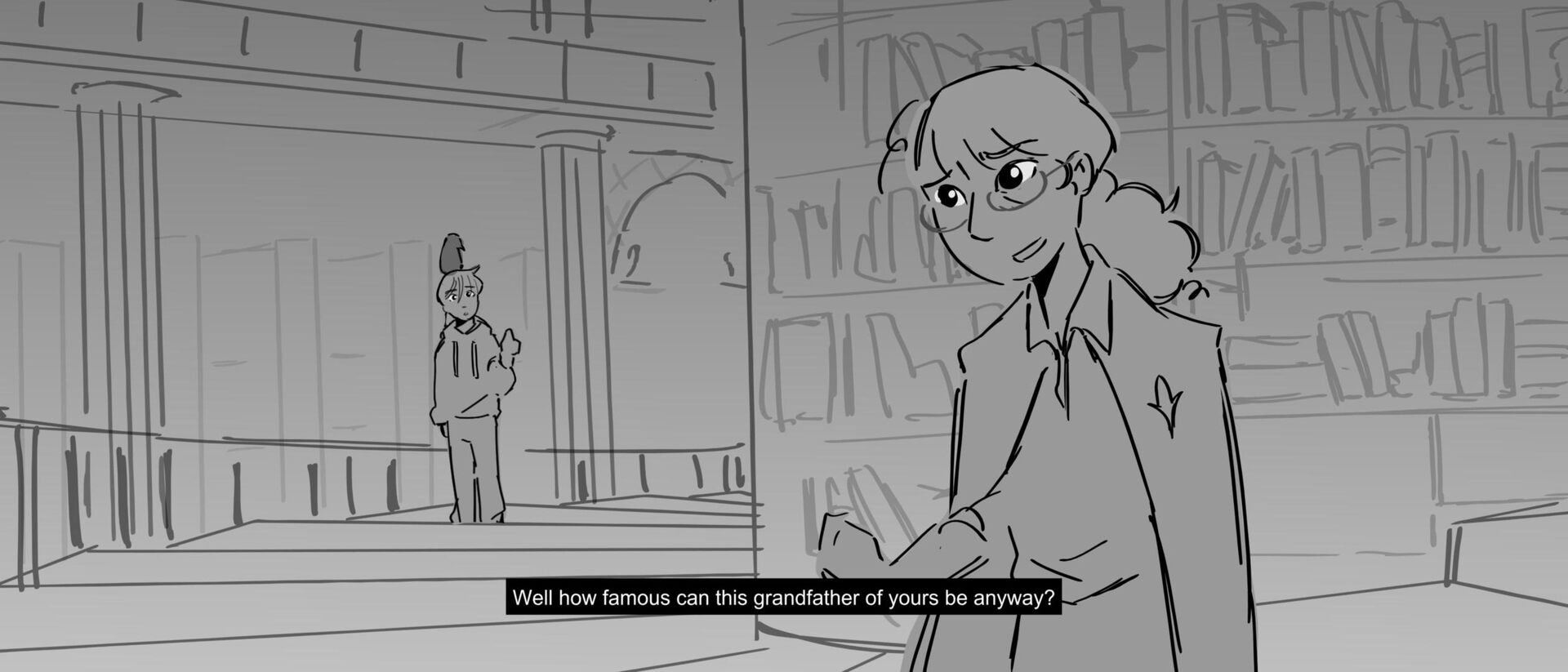 The curious grandson of a famous writer uncovers the massive, unending hallways of a library, guarded by birds of prey and one very kind librarian. Within the halls, however, lies the existence of one unwelcomed intruder that puts the entire knowledge of humanity ever written down at risk of being destroyed.