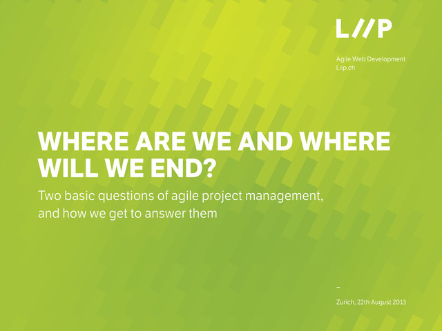 a Liip.ch Techtalk with @fterrier about two basic questions of agile project management, and how we get to answer them.