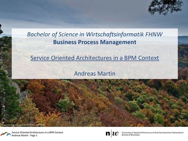 FHNW Business Process Management Service Oriented Architectures in a BPM Context Andreas Martin Service Oriented Architectures in a BPM Context http://www.flickr.com/photos/dirk_hofmann/4200450207