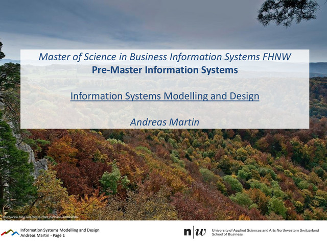 Information Systems FHNW Pre-Master Information Systems Information Systems Modelling and Design Andreas Martin Information Systems Modelling and Design http://www.flickr.com/photos/dirk_hofmann/4200450207