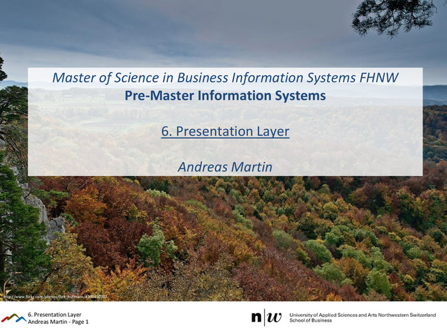 Information Systems FHNW Pre-Master Information Systems 6. Presentation Layer Andreas Martin 6. Presentation Layer http://www.flickr.com/photos/dirk_hofmann/4200450207