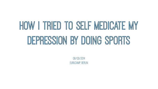 In my talk, I'll explain the hows and whys of depression based on what I’ve experienced first hand. You will hear about how I slowly recognized that something might be wrong with my life. I’ll show you the unusual way I tried to self medicate my symptoms instead of reaching out to family or friends. You will also hear a few strategies that have helped me dealing with my depression.