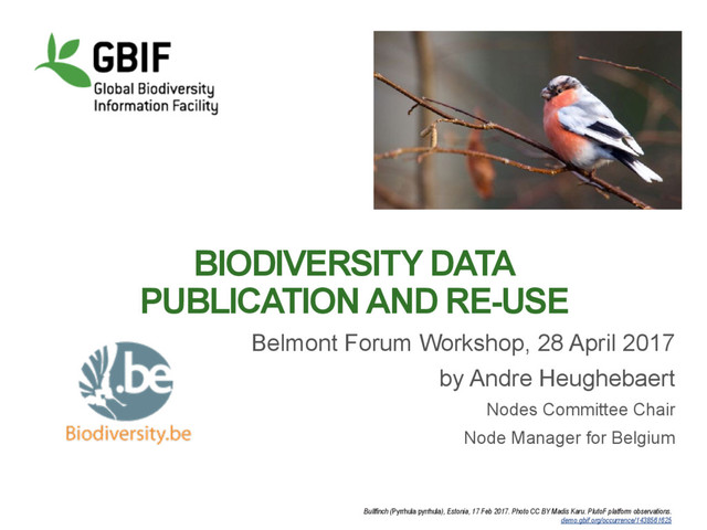 17 Feb 2017. Photo CC BY Madis Karu. PlutoF platform observations. demo.gbif.org/occurrence/1438561625 Belmont Forum Workshop, 28 April 2017 by Andre Heughebaert Nodes Committee Chair Node Manager for Belgium
