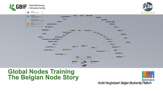integrated Belgian Biodiversity Information Service: • The DATA module • The SCIENCE module • The SCIENCE POLICY module • Two support modules IT & MANAGEMENT 2010: Merge with 2 other Belspo funded projects: BioDiv(CRIS) and early Platform(SPI) Data mobilization through small grants Digit calls 120k€ By end 2010: 32 datasets 4 Mio records (Tapir, early IPT By end 2010 (Tapir, early IPT): 32 datasets 4 Mio occurrences