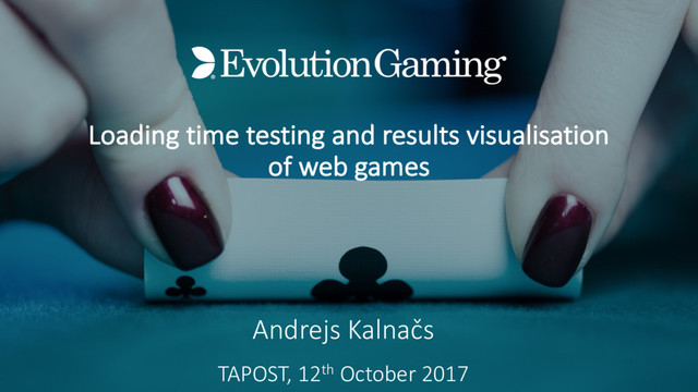 @ Evolution Gaming • 10 years of industry experience in QA • Many different roles • Wide business domains experience • Last 6 years – testing automation • Java, Perl, Bash, Groovy, Tcl • Evolution Gaming, Nokia, Accenture, Nokia Siemens Networks • Co-organizer of Riga Testing Automation Club meet-ups