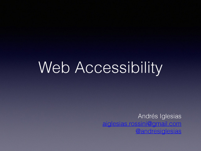 site is accessible if people with specific disabilities can use it with the same effectiveness, safety and security as non-disabled people.” • Validity and Reliability of Accessibility Evaluation Methods, Giorgio Brajnik • Not only for people with disabilities • Disability given by the context