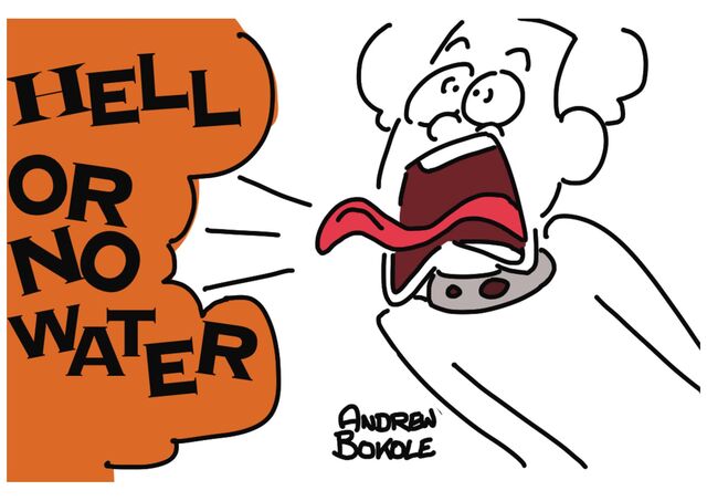 A man has to eat a whole plate full of red peppers before he can drink a glass of water, or he’ll get a nasty shock from his collar.