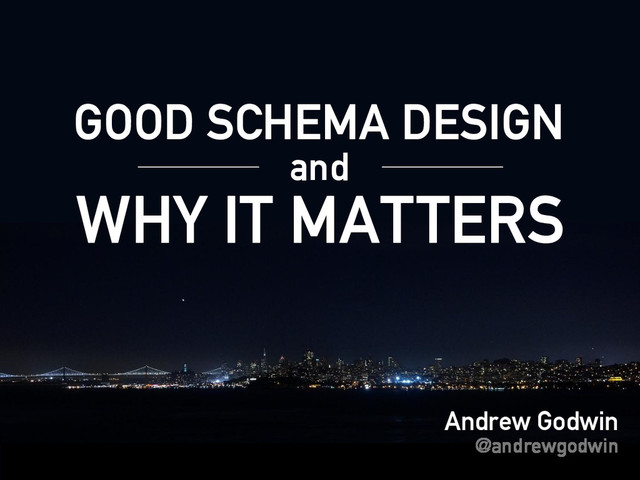 Andrew Godwin @andrewgodwin GOOD SCHEMA DESIGN WHY IT MATTERS and