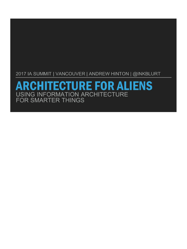 My 20 min talk for IA Summit 2017 in Vancouver, discusses how we can use information architecture to bridge the gap between humans and the artificial creatures we're releasing into our world.