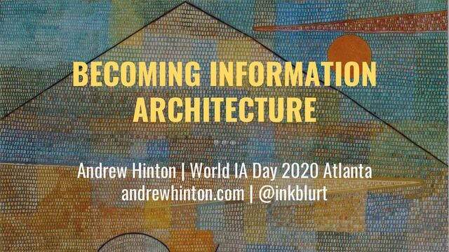 My keynote talk from the 2020 World Information Architecture Day event in Atlanta.