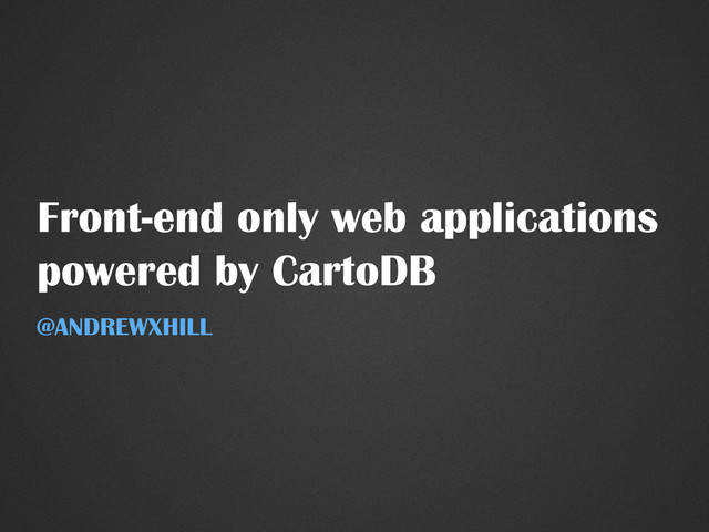 An overview of how CartoDB makes it easy to build apps on the web but also a preview of using CartoDB plus Security Definers to act as a data posting endpoint for your forms or apps.