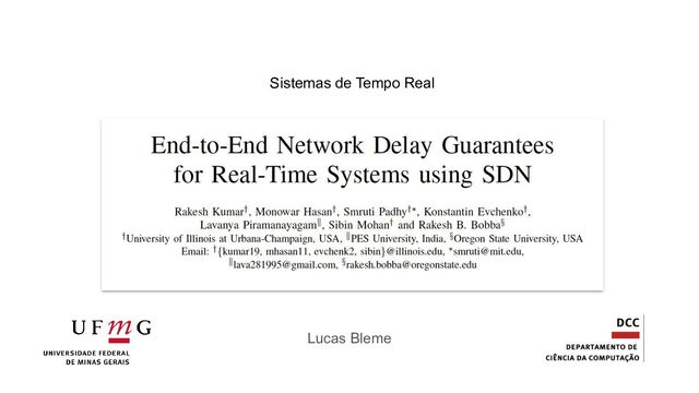 Presentation of the paper "End-to-End Network Delay Guarantees for Real-Time Systems using SDN", presented at the Real-Time Systems discipline's seminar at DCC/UFMG 2022/02.