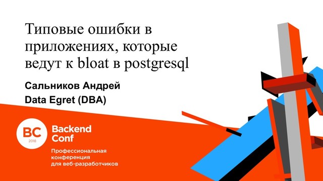 В нем рассмотрены 3 стандартные проблемы в приложениях которые ведут к распуханию таблиц и индексов в базе данных PostgreSQL, а так же как следствие к снижению производительности и эффективности приложения, работающего с базой данных.