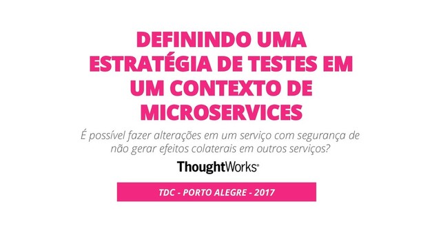 No hype dos microserviços, aumentamos os pontos de falhas de uma aplicação, e com isso, pensamos em uma maior cobertura de testes. Que tipo de testes vem a cabeça quando pensamos em microserviços? Testes automatizados? Testes de unidade? Testes exploratórios? Trazendo a experiência de um projeto que utiliza a arquitetura de microserviços, nesta palestra vamos trazer alguns exemplos de como pensamos a estratégia de testes, quando rodar cada tipo de teste e qual o peso cada tipo de teste tem em cada contexto.