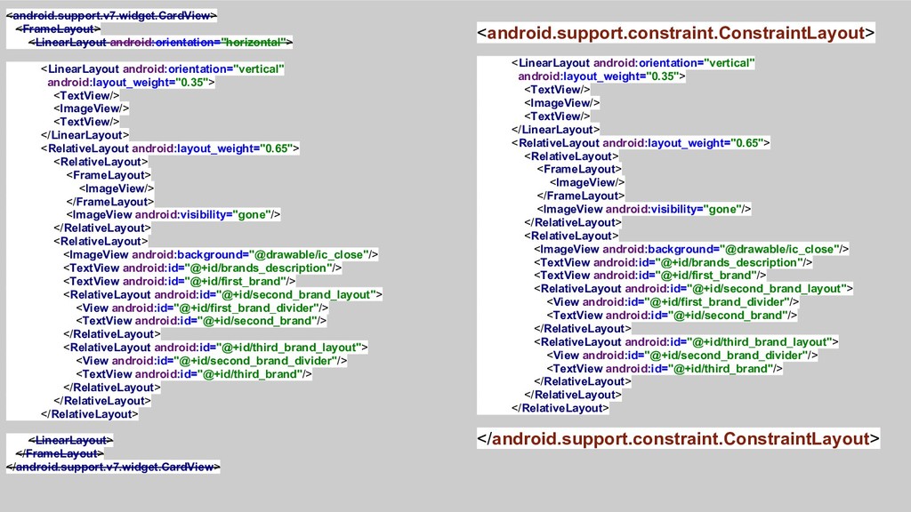 ConstraintLayout – a layout to rule them all. Advantages and disadvantages of using ConstraintLayout, performance comparisons and built in animations.