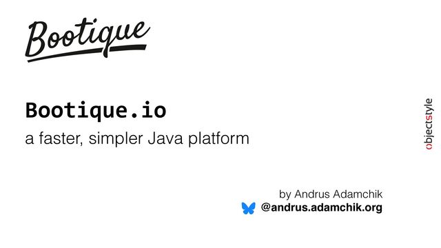 In our choice of application platforms in the Java community, we seem to be ready to sacrifice elegance for convenience and are content with slow startup times, bloated jars and “magical” annotations. The Bootique project (https://bootique.io) strives to push the envelope against this trend, and give both elegance and convenience. It is a faster, simpler, lightweight app platform with a minimal “weirdness factor”, and yet with rich functionality including dependency injection, interoperable modules, centralized configuration, built-in CLI and more.