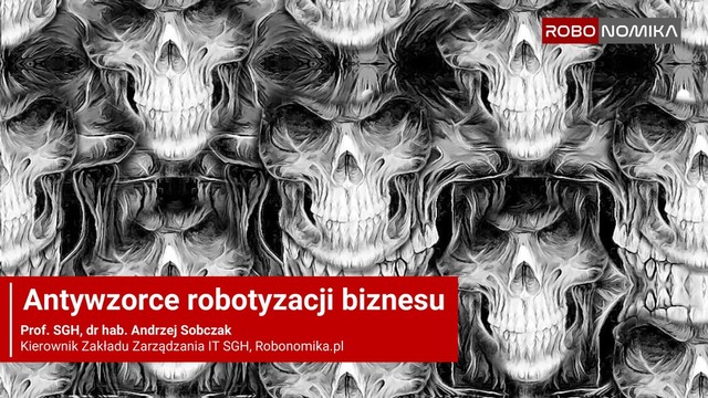 Antywzorce to powtarzające się przypadki niewłaściwego zachowania albo rozwiązywania określonego problemu / problemów. Identyfikacja i analiza antywzorców pozwala uniknąć ich w przyszłości. W Polsce przedsięwzięcia dotyczące szeroko rozumianej robotyzacji biznesu (zarówno robotyzacji procesów za pomocą narzędzi RPA, a także kanałów komunikacji – za pomocą voicebotów, chatbotów, taskbotów) są w stosunkowo wstępnej fazie. W wielu miejscach działania te traktowane są jako przedsięwzięcia typu PoC, eksperymenty, innowacje. Znaczna część organizacji nie ma jeszcze dużych doświadczeń w tym obszarze. Dlatego celem prezentacji jest usystematyzowanie i przedstawienie antywzorców robotyzacji biznesowej – aby można było “uczyć się na błędach, najlepiej cudzych”.