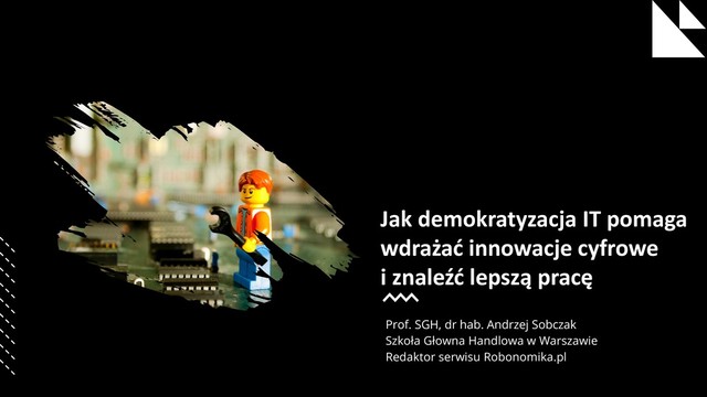 Podczas wystąpienia demonstrowałem na zanonimizowanym przykładzie jak demokratyzacja IT może z jednej strony pomóc wdrażać innowacje cyfrowe w firmach, a jednocześnie pozwala podnosić umiejętności pracowników, co zwiększa ich szanse na rynku pracy.