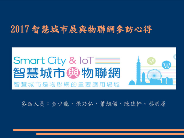 2017 智慧城市展與物聯網參訪心得 參訪人員:童少龍、張乃弘、蕭旭傑、陳誌軒、蔡明原