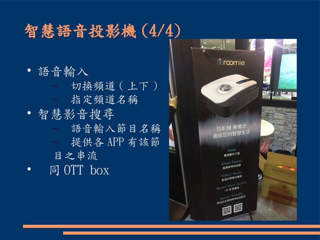 指定頻道名稱 智慧影音搜尋 – 語音輸入節目名稱 – 提供各 APP 有該節 目之串流 同 OTT box