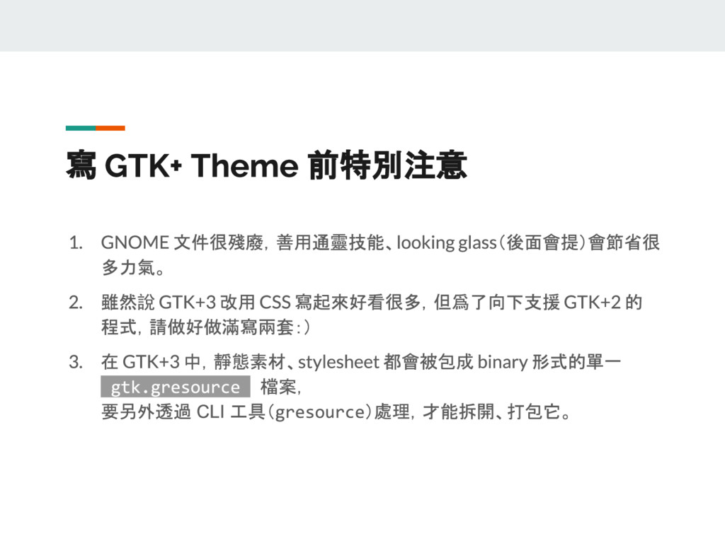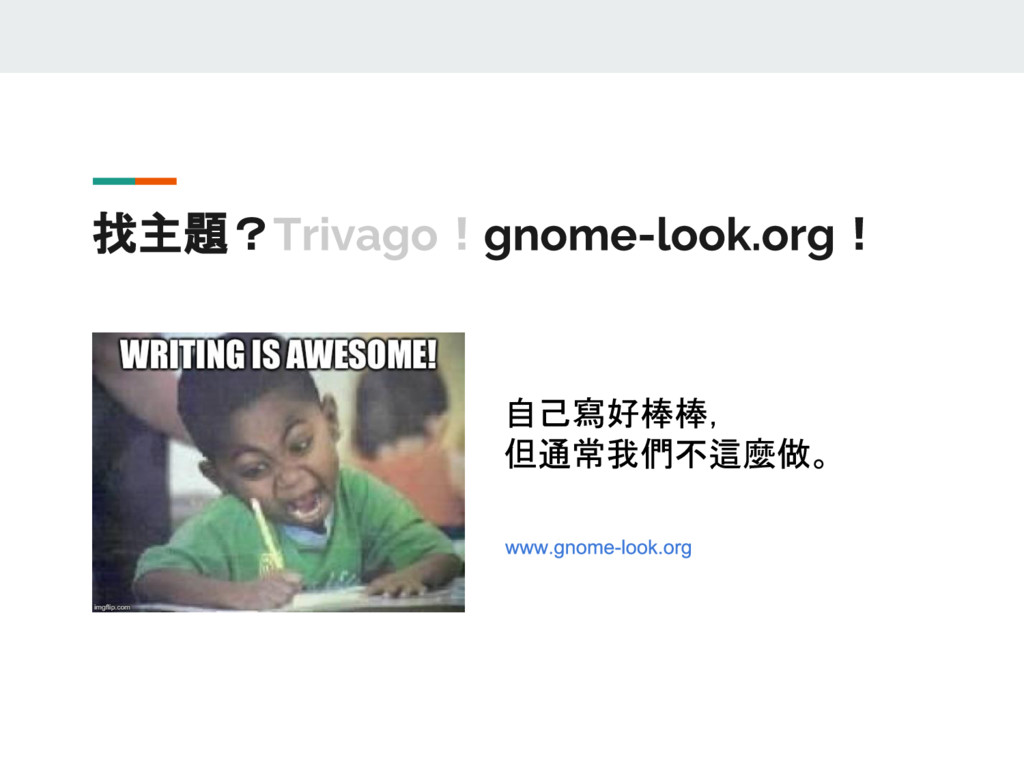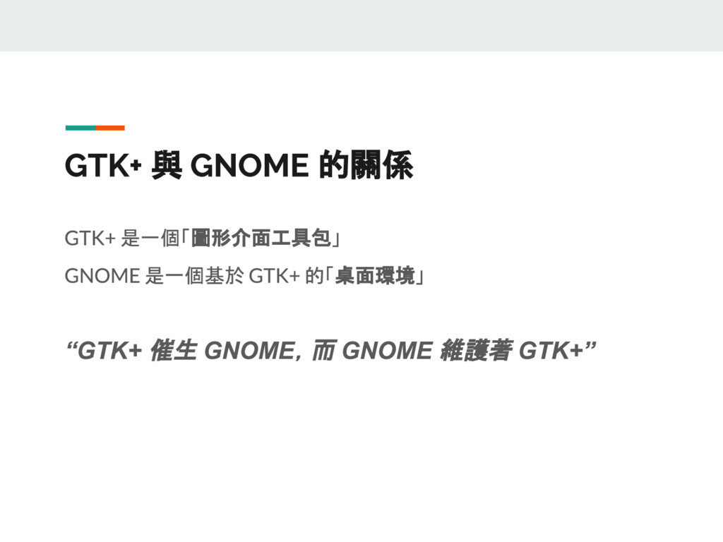 也許你在這之前聽過 GNOME、用過 GNOME,但您也可能已經將平常所使用的 Ubuntu 改回 Unity 介面,而一直沒有機會仔細研究精緻的圖形介面是如何整合的;或者,你也許略懂要怎麼調整出獨一無二的介面,但對 GNOME 的好朋友 GTK+ 一點也不熟。