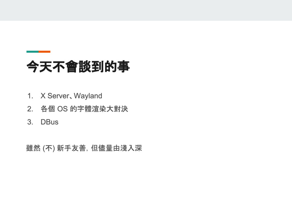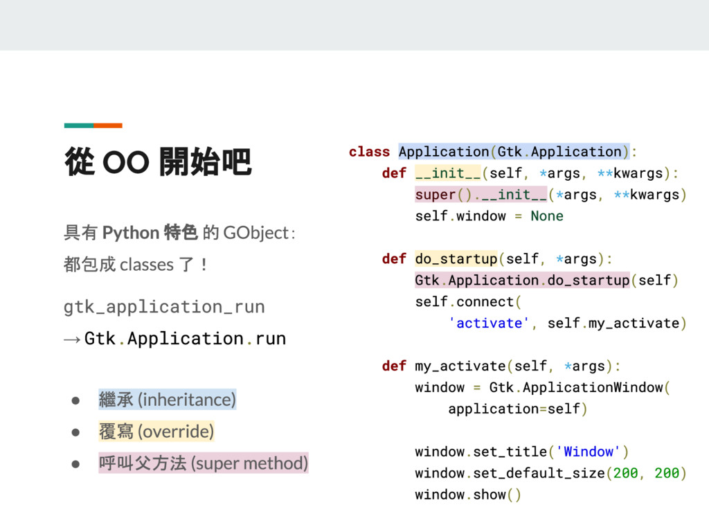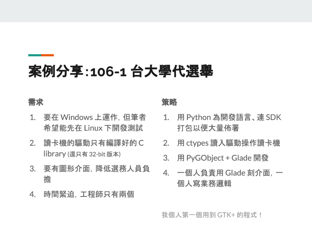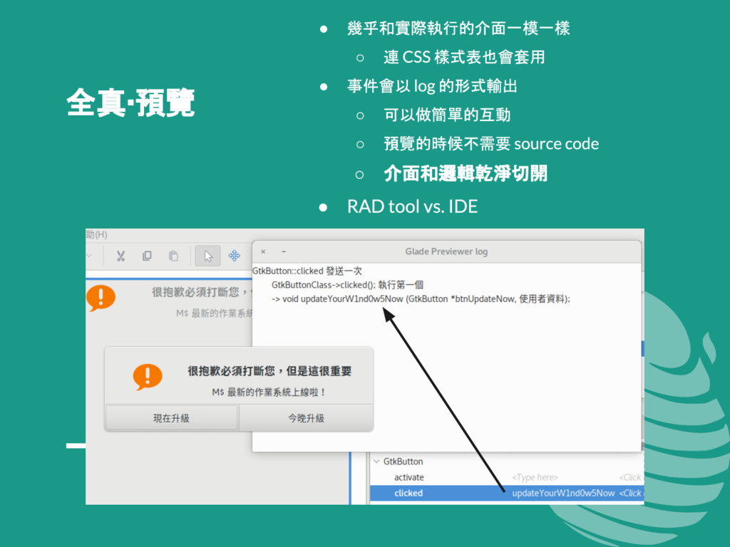 有鑑於網路上的參考資料紛雜,且 GTK 版本更迭快速,這門議程想要以兩位 GNOME 愛好者的生活經驗出發,深入淺出介紹使用 GTK+ 的祕訣,讓 GNOME 成為更加賞心悅目且適合日常使用的桌面環境。這門議程中還會教各位怎麼以 Python 撰寫 GTK 程式,讓您能用熟悉的語言,輕輕鬆鬆寫出跨平台的原生桌面應用程式!