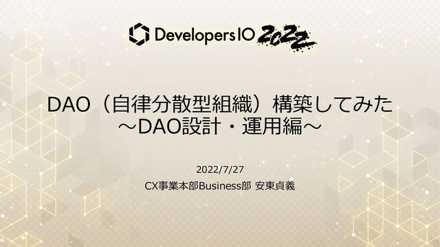 Developers IO 2022に「DAO(自律分散型組織)構築してみた 〜DAO設計・運用編〜」というタイトルで登壇した時の資料です。