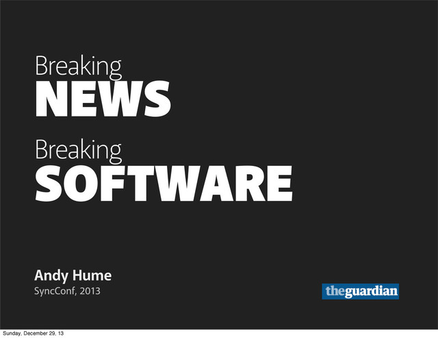 SOFTWARE Andy Hume SyncConf, 2013 NEWS Breaking Breaking Sunday, December