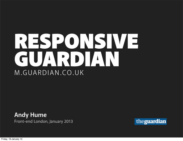 The Guardian recently released a new site on m.guardian.co.uk. It's a mobile site with a big future. Here's what we're doing with client-side technology to set the foundations of that future.