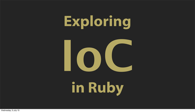 never really liked skinny controller fat model • Started splitting models into modules • Now using service objects, presenters, etc • This led to thinking about IoC as we do in .NET Wednesday, 3 July 13