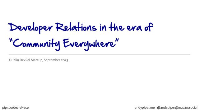 Presentation delivered at Dublin DevRel Meetup, September 27 2023 Additional notes https://pipr.co/devrel-ece
