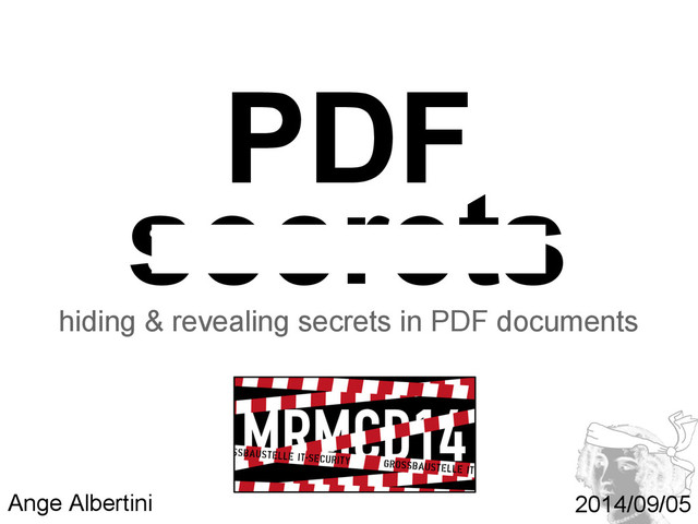 but: • they don’t erase pages! ◦ they extract the other pages → the whole page is lost but the image contents (as objects) are still left! and extractable!! Erasing a page with a tool D:\>pdftk "PDF Secrets.pdf" cat 1-3 5-end output no4.pdf
