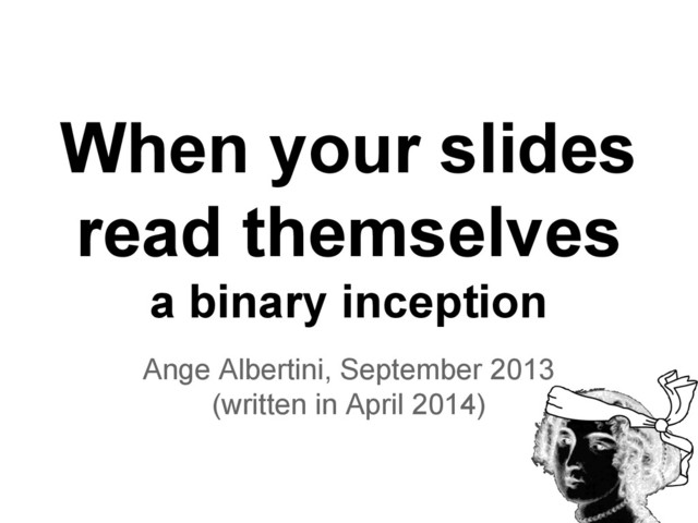 slides themselves. So, by the time you’re announcing the demo, you can say: actually, we’ve been in the demo all along. the slides are the demo ⇒ inception :)
