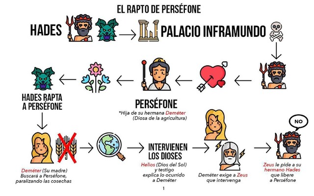 Mitos: -El rapto de Perséfone -El mito de Aracne -Los amores de Afrodita -Las metamorfosis de Zeus -La lucha por el patronaje de Atenas