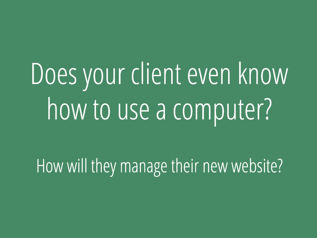 t a s t o p t o e x t r a w o r k ? D o y o u b u i l d t i m e a n d c o s t i n t o e v e r y p r o j e c t ? H o w i s t h e w o r k fl o w d i ff e r e n t w h e n c l i e n t s a r e s l o w ? H o w m u c h d o y o u n e e d t o k n o w a b o u t y o u r c l i e n t s g o a l s t o g e t y o u r j o b d o n e ? W r i t e i t d o w n , m a k e t h e m s i g n i t .