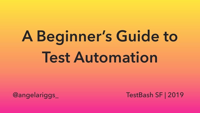 @angelariggs_ TestBash SF | 2019 A Beginner’s Guide to Test