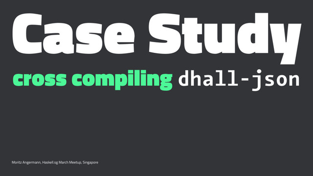 dhall-json-1.0.11 $ arm-linux-gnueabihf-cabal new-build \ --configure-option=--host=arm-linux-gnueabihf [...] After searching the rest of the dependency tree exhaustively, these were the goals I've had most trouble fulfilling: base, scientific, hashable, unordered-containers, yaml, dhall-json Moritz Angermann, Haskell.sg March Meetup, Singapore