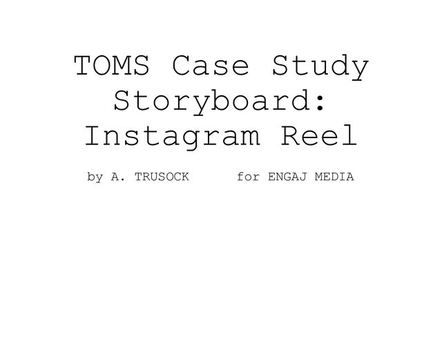 and has expanded into eyewear, coffee, and more, Notes "Eyewear" graph bar extends down. Logo traces on, and is pushed by the bar. Dialog "As a result, TOMS became a successful global brand and has expanded into eyewear, coffee, and more, Notes "Coffee" graph bar extends down. Logo traces on, and is pushed by the bar. Dialog "As a result, TOMS became a successful global brand and has expanded into eyewear, coffee, and more, Notes "Coffee" graph bar extends down. Logo traces on, and is pushed by the bar. TOMS Case Study Storyboard: Instagram Reel by A. TRUSOCK for ENGAJ MEDIA Page 26/29