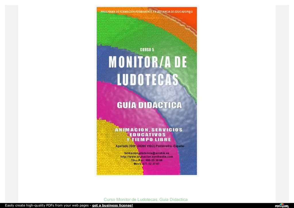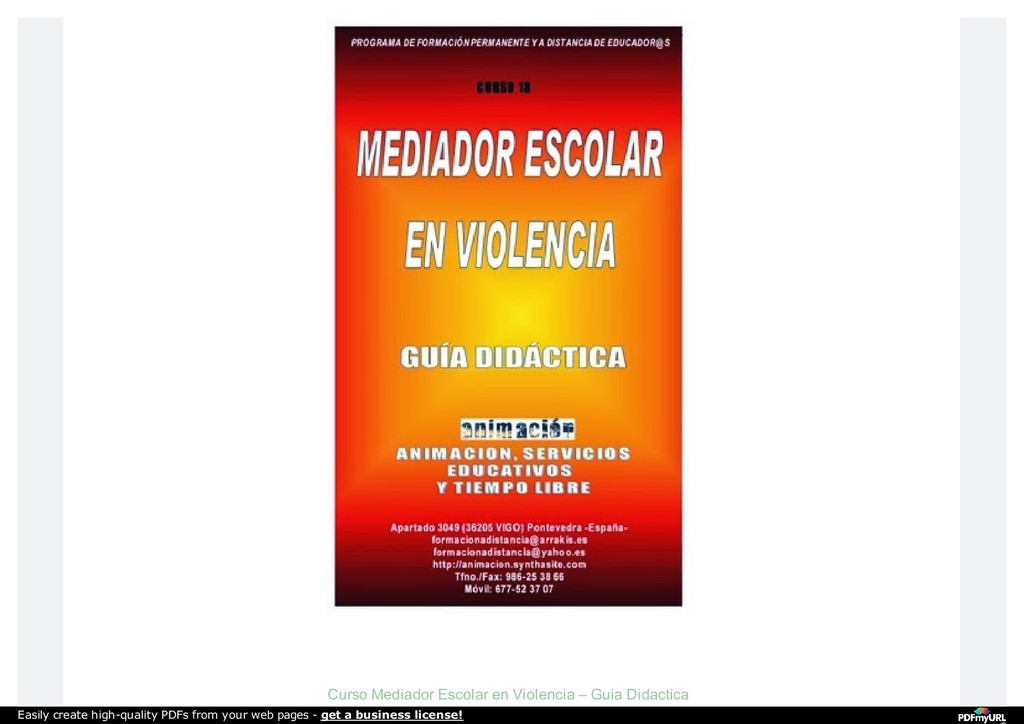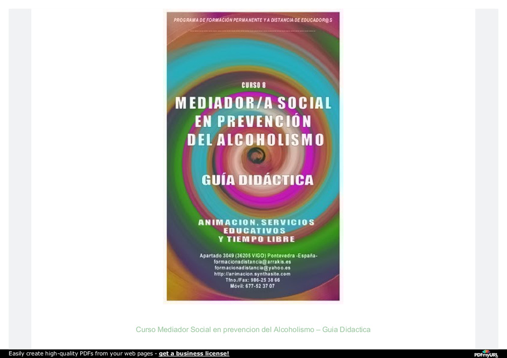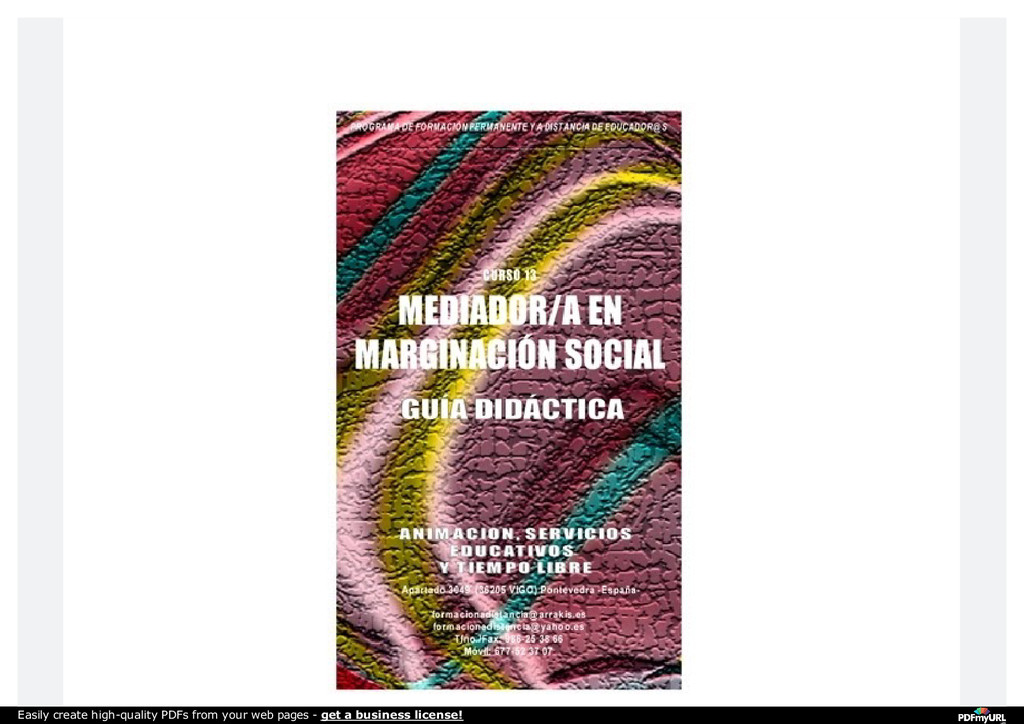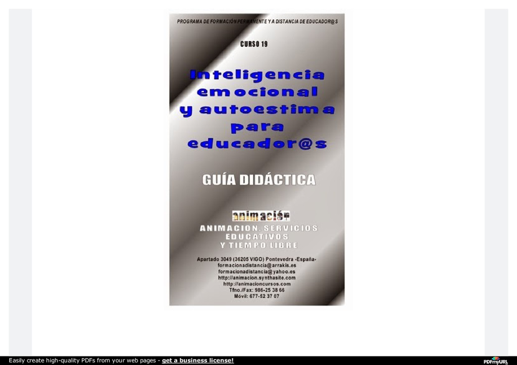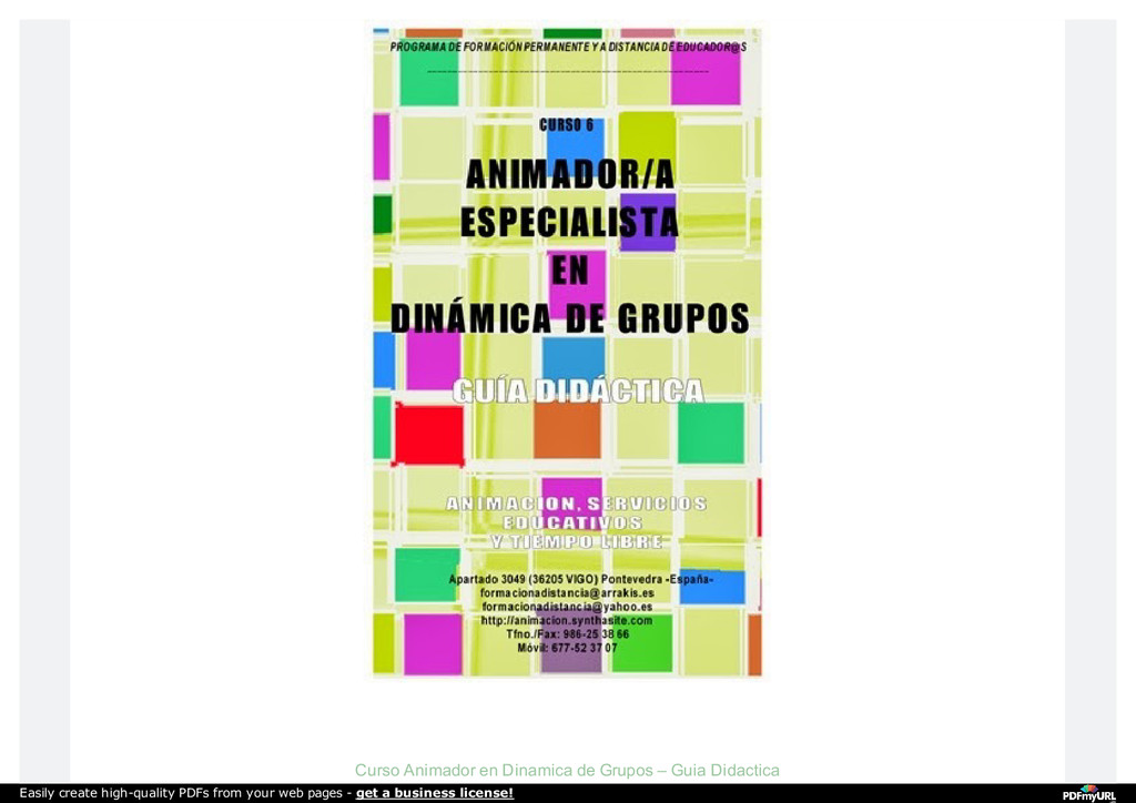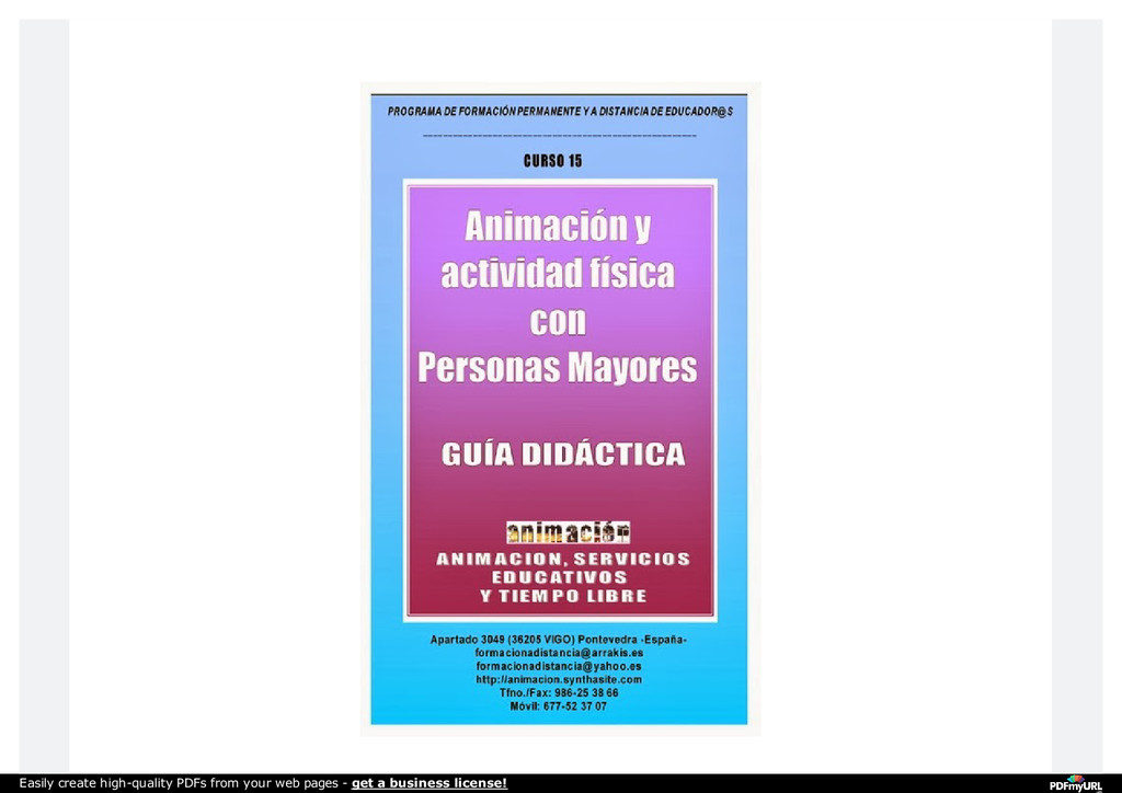 ANIMACION, SERVICIOS EDUCATIVOS Y TIEMPO LIBRE Formacion a Distancia y Permanente de Educadores/as [email protected][email protected] http://animacion.synthasite.com http://pinterest.com/animacioncursos http://cursoseducadores.blogspot.com.es http://www.facebook.com/animacioncursos http://twitter.com/cursosanimacion Apartado 3049 -36205 VIGO - España Easily create high-quality PDFs from your web pages - get a business license!