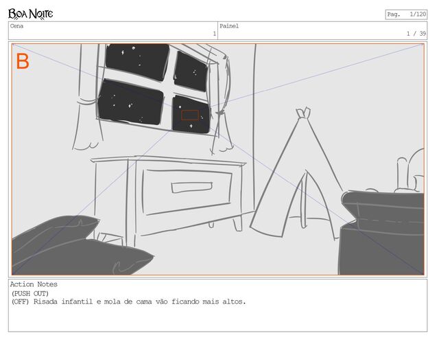 contar uma história de uma menininha muito parecida com você. Que também não gostava da noite nem um pouco. Na verdade, ela morria de medo. Action Notes MÃE se deita ao lado de FILHA. FILHA percebe MÃE, mas continua emburrada. Pag. 29/120
