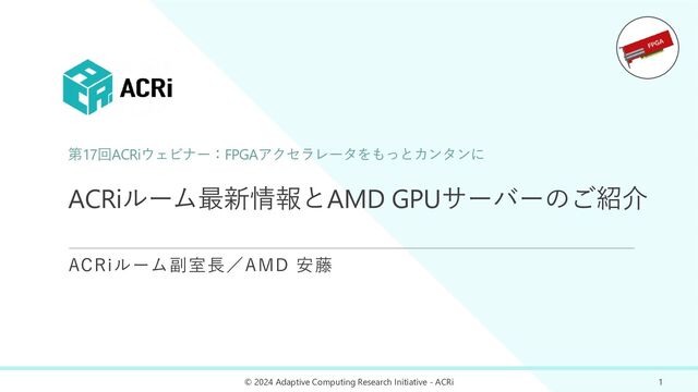 ACRiルームは2020年7月のオープンから今年で5年目を迎えます。ACRiルームに新たに導入された機材や最近の利用状況についてご紹介します。また、ACRiルームにAMD GPUを導入するにあたって苦労した話、AIモデルの学習から推論までをGPUとAI Engineを使って実行するチュートリアル、生成AIを動かしてみた話をご紹介します。