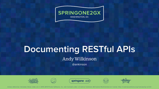 Inc. and licensed under a Creative Commons Attribution-NonCommercial license: http://creativecommons.org/licenses/by-nc/3.0/ SPRINGONE2GX WASHINGTON, DC Documenting RESTful APIs Andy Wilkinson @ankinson