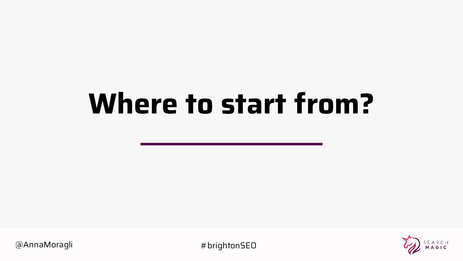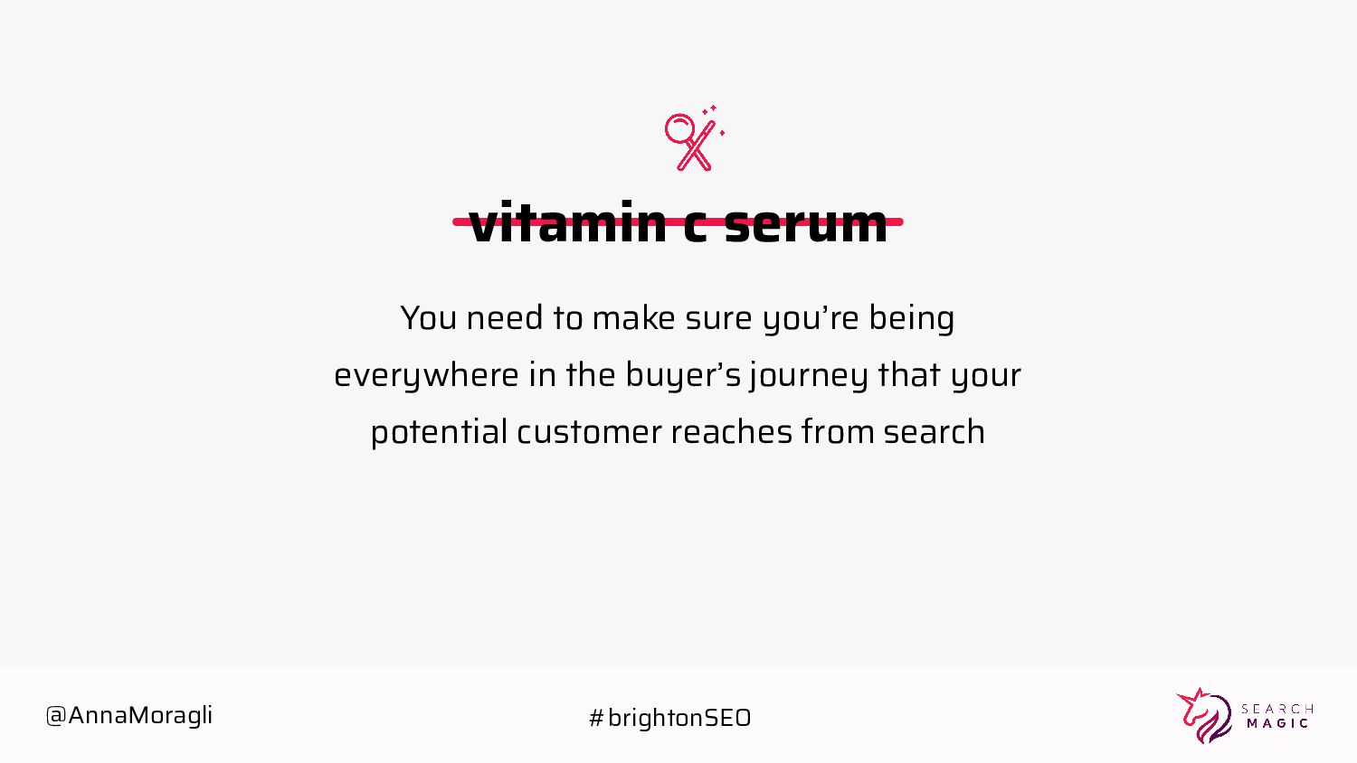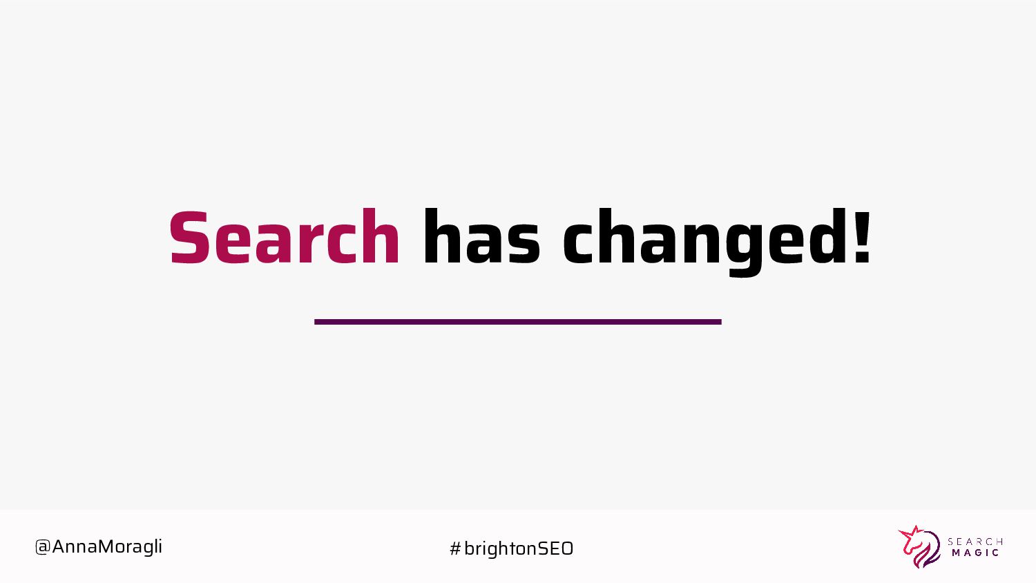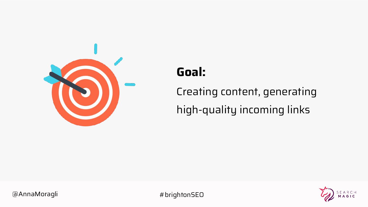 cards Take a picture Post on social Tag @searchmagic Enter the Giveaway Take a picture of your badge with your name and Search Magic’s logo visible Tag @searchmagic and use #BrightonSEO Post the photo on Instagram stories 5 lucky winners will get Amazon gift cards @AnnaMoragli #brightonSEO