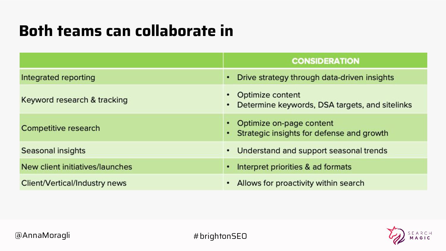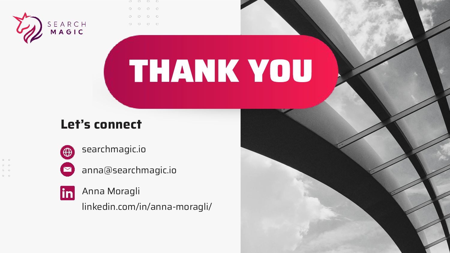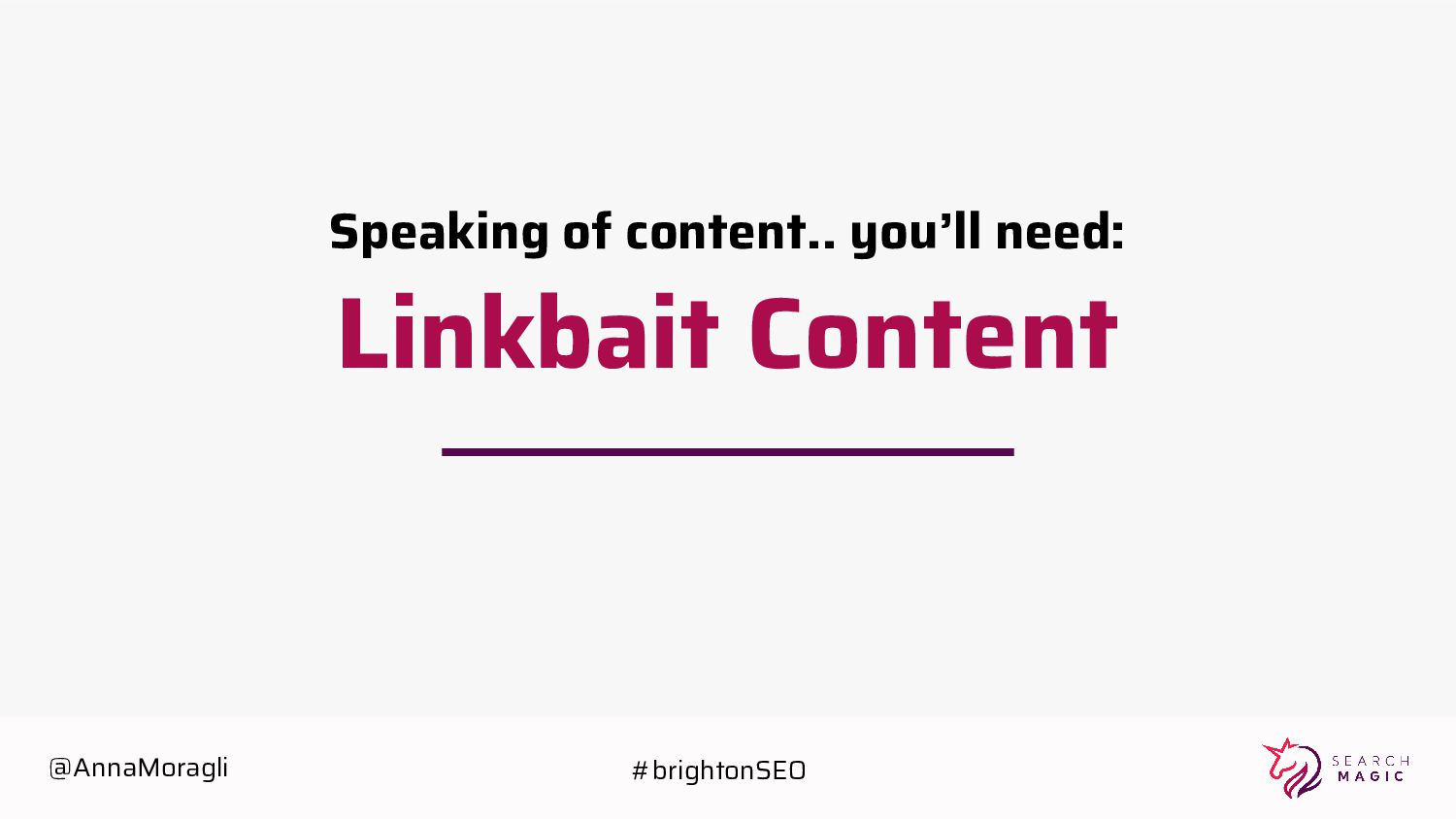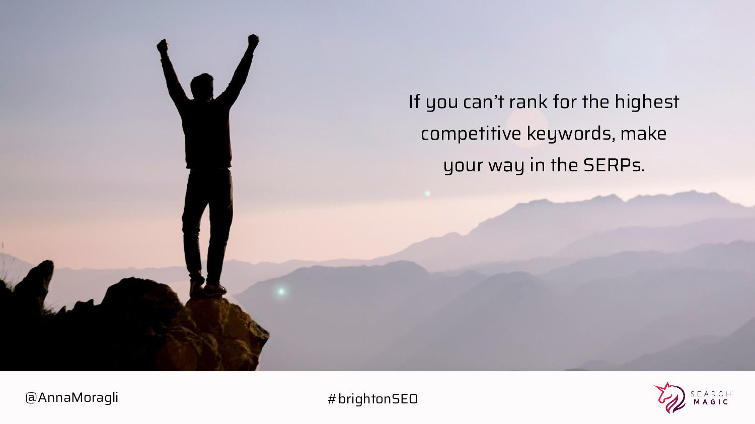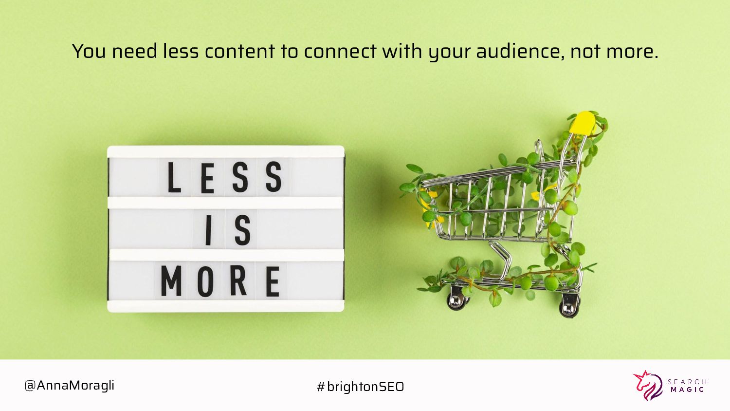 cards Take a picture Post on social Tag @searchmagic Enter the Giveaway Take a picture of your badge with your name and Search Magic’s logo visible Tag @searchmagic and use #BrightonSEO Post the photo on Instagram stories 5 lucky winners will get Amazon gift cards @AnnaMoragli #brightonSEO
