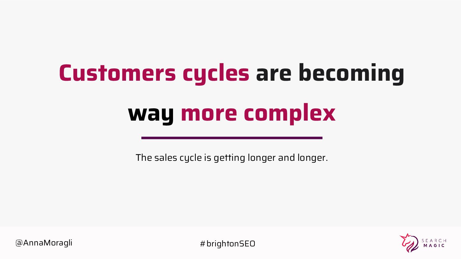 directly proportional to: 1. Higher Expectations 2. Need of Domain Knowledge 3. More informed 4. Trust / Connection to the Brand Search Influencers Research Peer review Share Awareness Consideration Purchase Compare Purchase Trust Decide Buyers Trust Share Research Inbound Evangelize Discover Web Company Website Events Sales Peers Social Email Digital @AnnaMoragli #brightonSEO