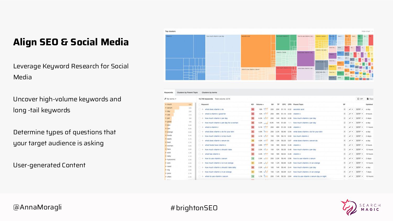 Media Uncover high-volume keywords and long -tail keywords Determine types of questions that your target audience is asking User-generated Content @AnnaMoragli #brightonSEO