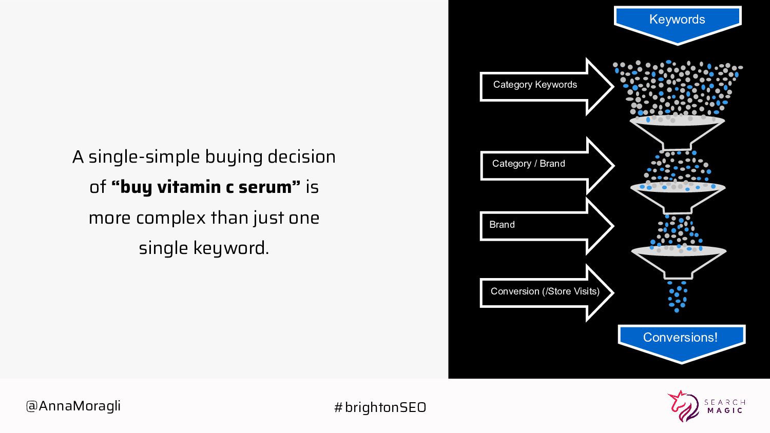 serum” is more complex than just one single keyword. Category / Brand Brand Conversion (/Store Visits) Conversions! Keywords Category Keywords @AnnaMoragli #brightonSEO